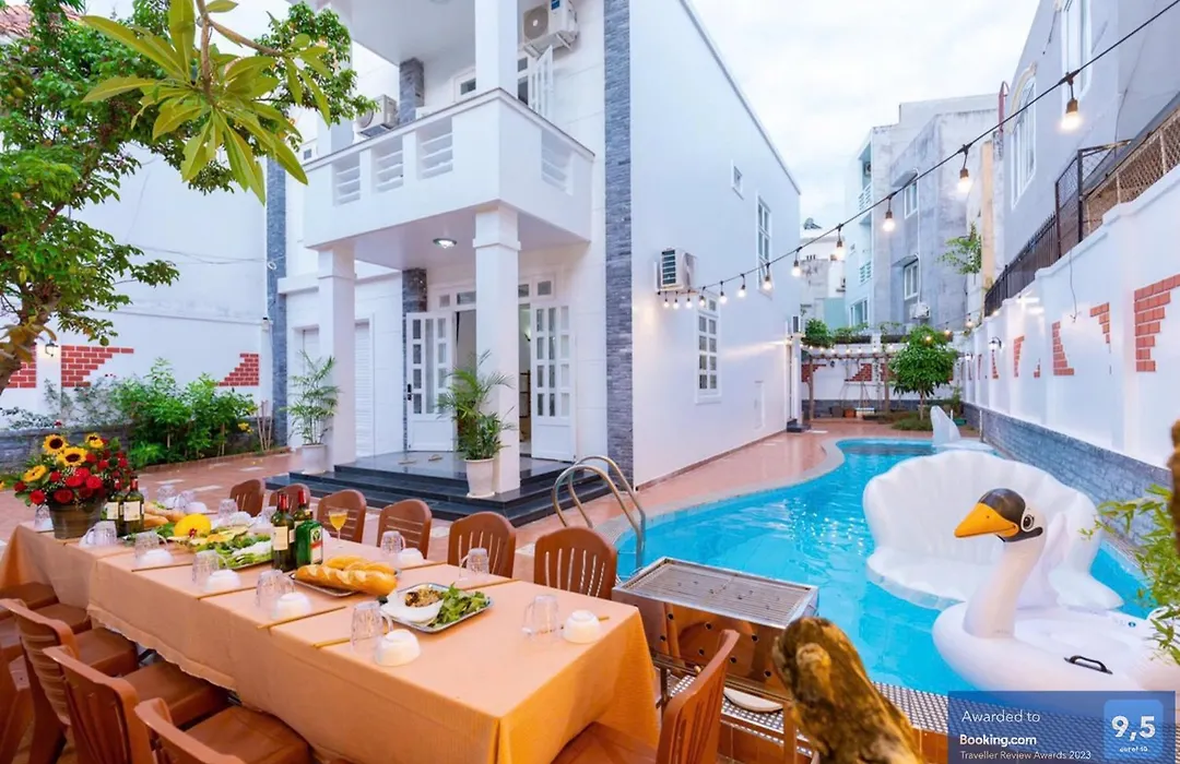 Situated 2.3 km from Hon Ba Islet, the 4-bedroom The Sun Villa 4A - Free Karaoke Bida - Bi Lac - Ghe Massage - Gan Cot Co Bai Sau Thuy Van Vung Tau invites guests to relax at a terrace.